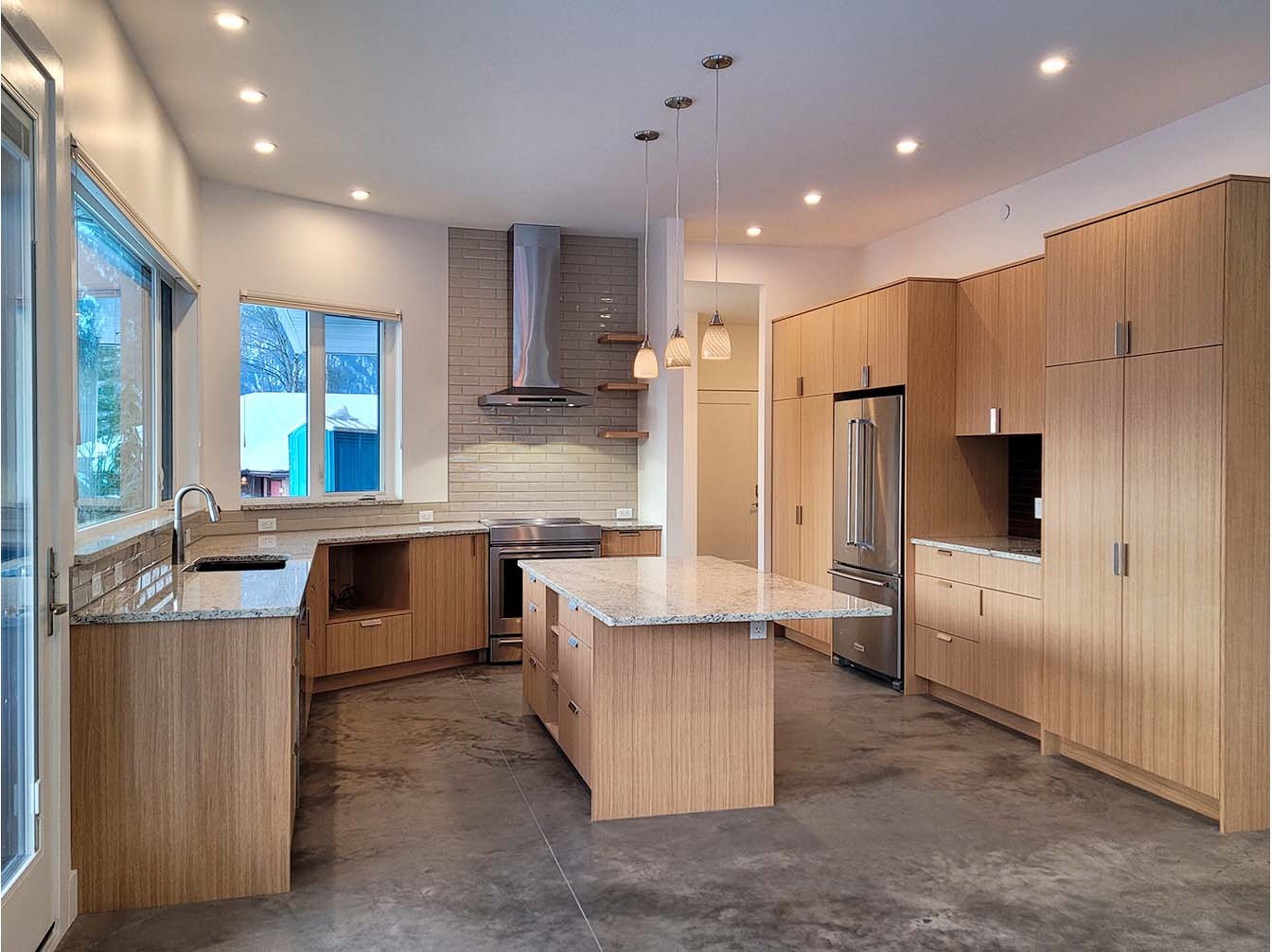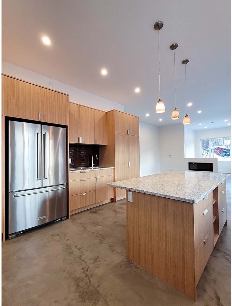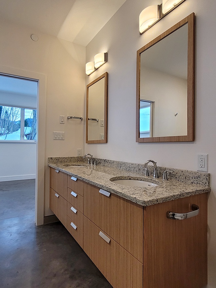 The uniqueness of my situation made my choice of builder critical. I was away 90% of the time during the planning and building stages of my house construction and my old house was falling down around me. I needed a reliable and motivated design/build firm to execute the project within a certain time line. I found a house I liked online and sent Marc the link. From the pictures and rudimentary floor plan he and Lara drew up the plans and designed the house to accommodate my demands for green SIP construction. Finalizing the design of a house can be a little daunting with all the details. Lara made sure to have only 2 or 3 suitable choices of each layout, fixture or sample so I was able to make decisions without being overwhelmed. Marc and Lara proved to be very accommodating with my ideas and their communication was open and easy. In all, the project ran for almost one year start to finish and I now live in a beautiful and comfortable new home.