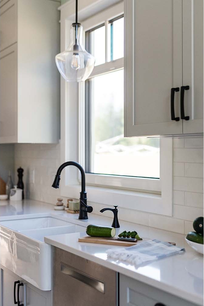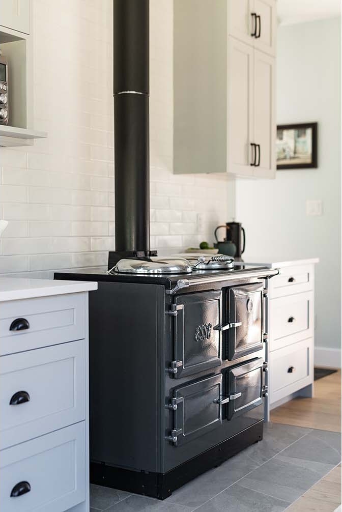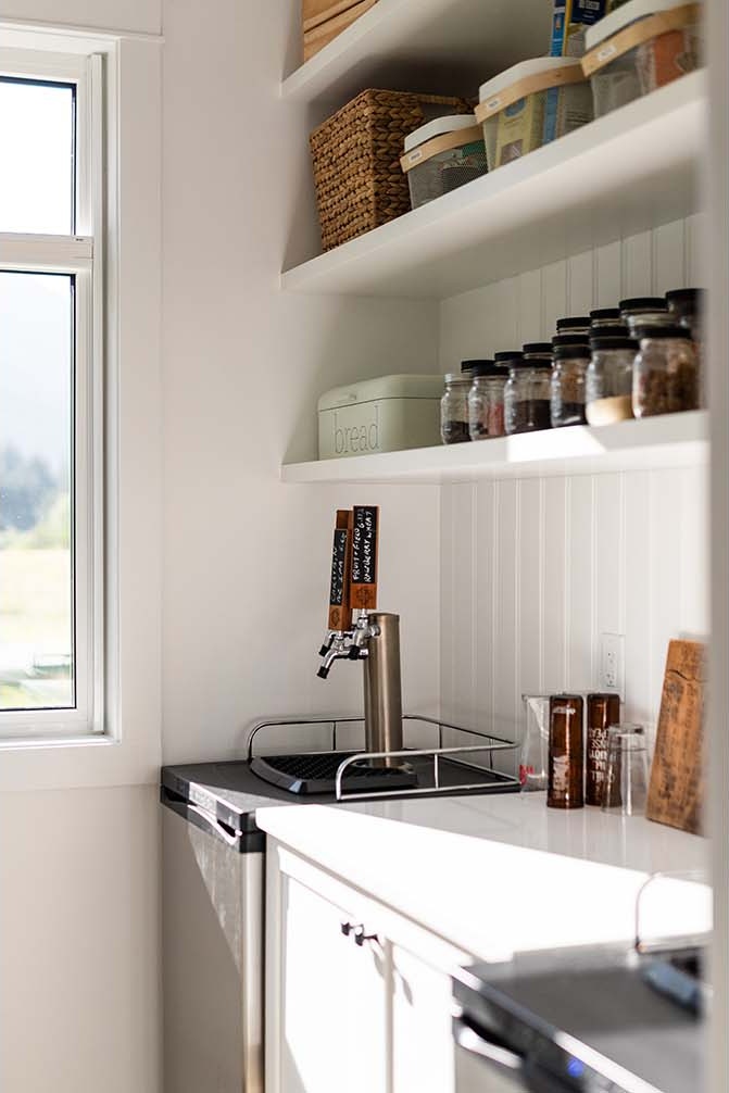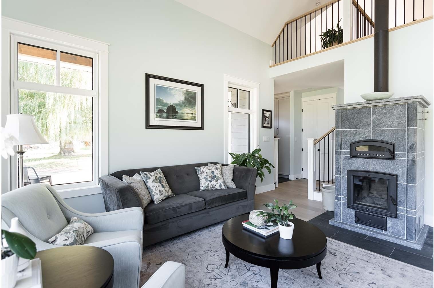 Situated on a rural acreage, the home, garage, and circular driveway have been positioned to showcase the property’s existing weeping willow and fruit trees. This 1 1/2 story residence features a spacious loft overlooking the vaulted great room, accentuated by exposed timber collar ties that were salvaged from an old barn on the property. Transom windows above interior doors allow natural light to flow through the space and accentuate the generous 9′ ceilings. The kitchen includes a walk-in pantry ideal for storing the bounty from the property’s gardens, complete with two Kegerators for dispensing home-brewed craft beer. The master bedroom and bathroom are conveniently located on the main floor, designed with aging in place in mind. A soapstone mass heater with a bread oven provides warmth throughout the entire home, while the wood-fired cooker in the kitchen eliminates the need for gas.