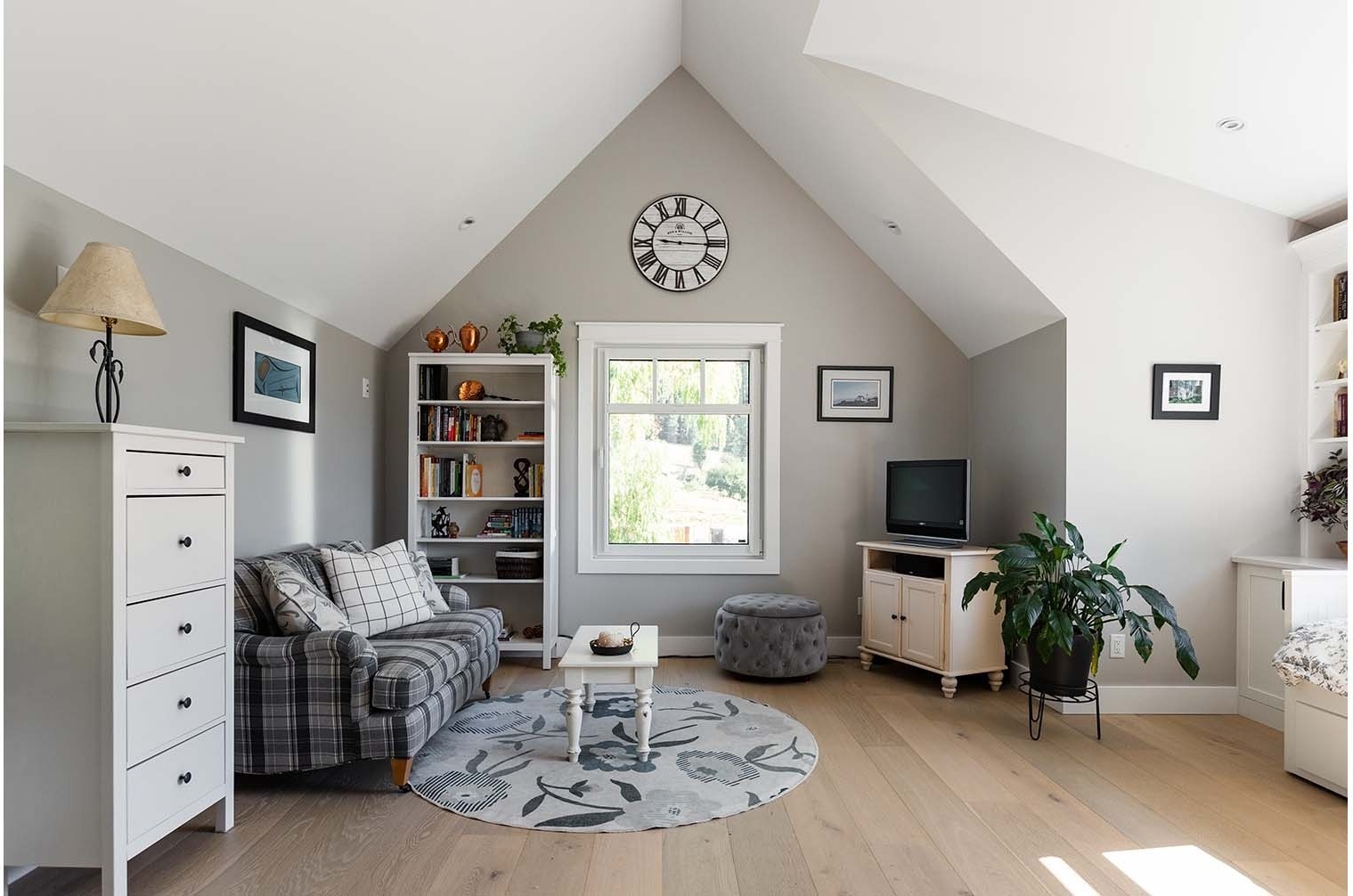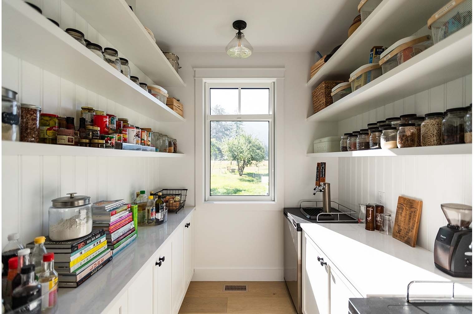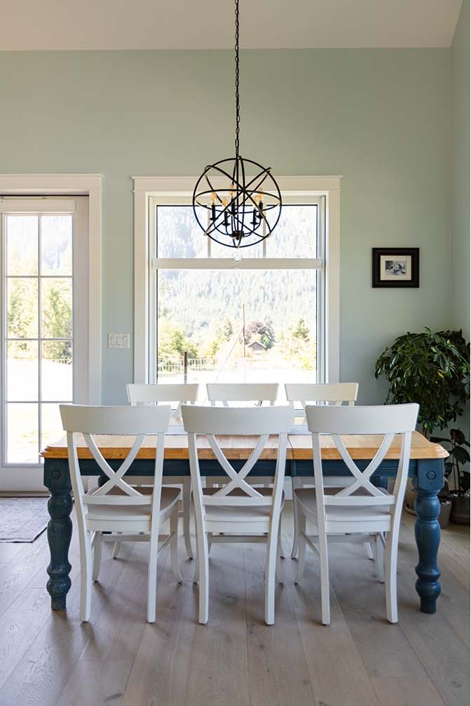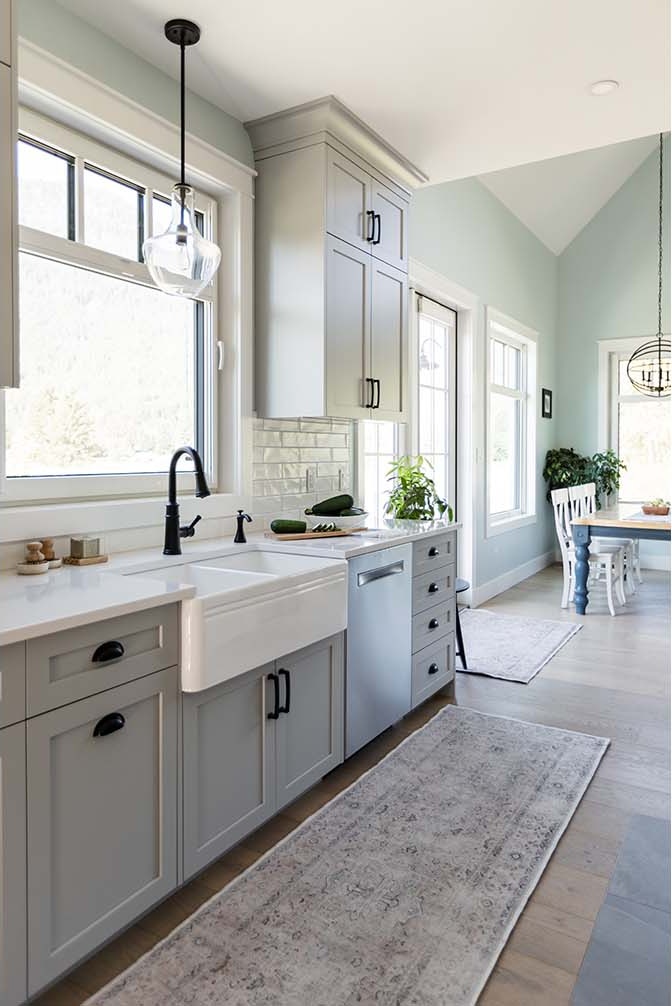 Situated on a rural acreage, the home, garage, and circular driveway have been positioned to showcase the property’s existing weeping willow and fruit trees. This 1 1/2 story residence features a spacious loft overlooking the vaulted great room, accentuated by exposed timber collar ties that were salvaged from an old barn on the property. Transom windows above interior doors allow natural light to flow through the space and accentuate the generous 9′ ceilings. The kitchen includes a walk-in pantry ideal for storing the bounty from the property’s gardens, complete with two Kegerators for dispensing home-brewed craft beer. The master bedroom and bathroom are conveniently located on the main floor, designed with aging in place in mind. A soapstone mass heater with a bread oven provides warmth throughout the entire home, while the wood-fired cooker in the kitchen eliminates the need for gas.