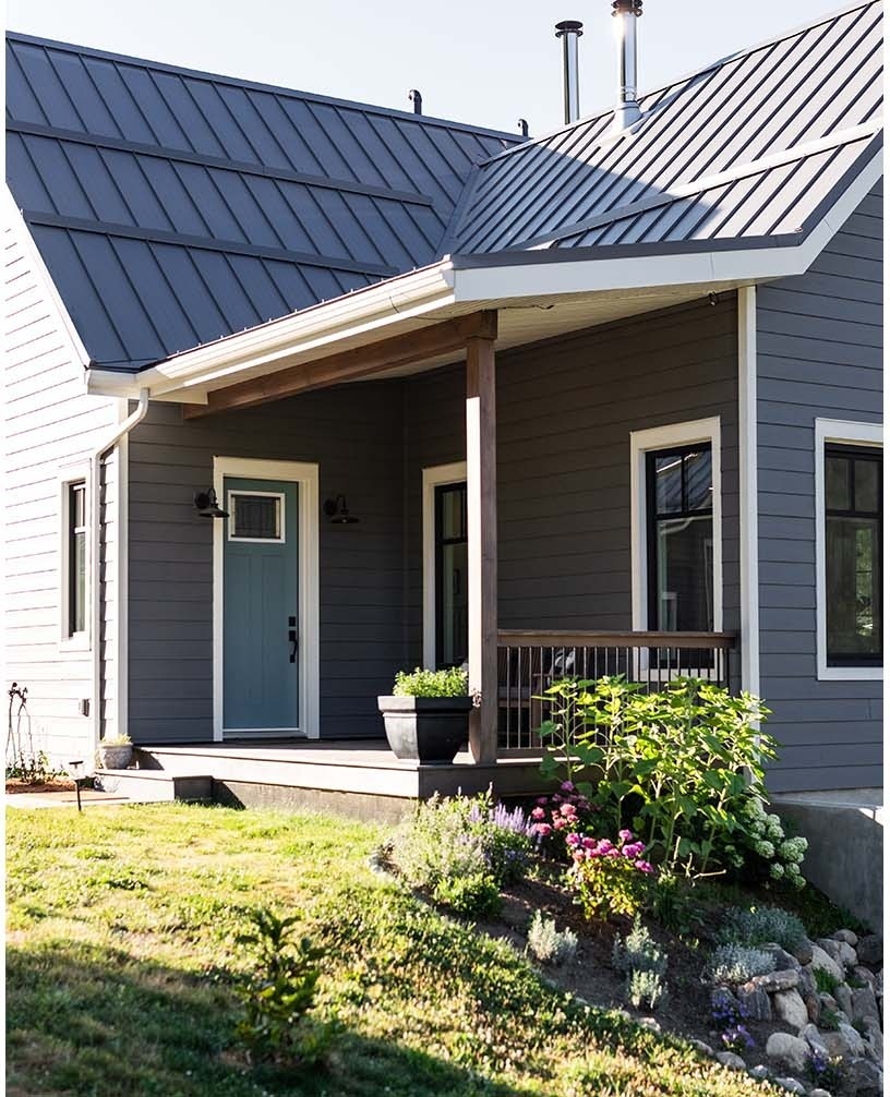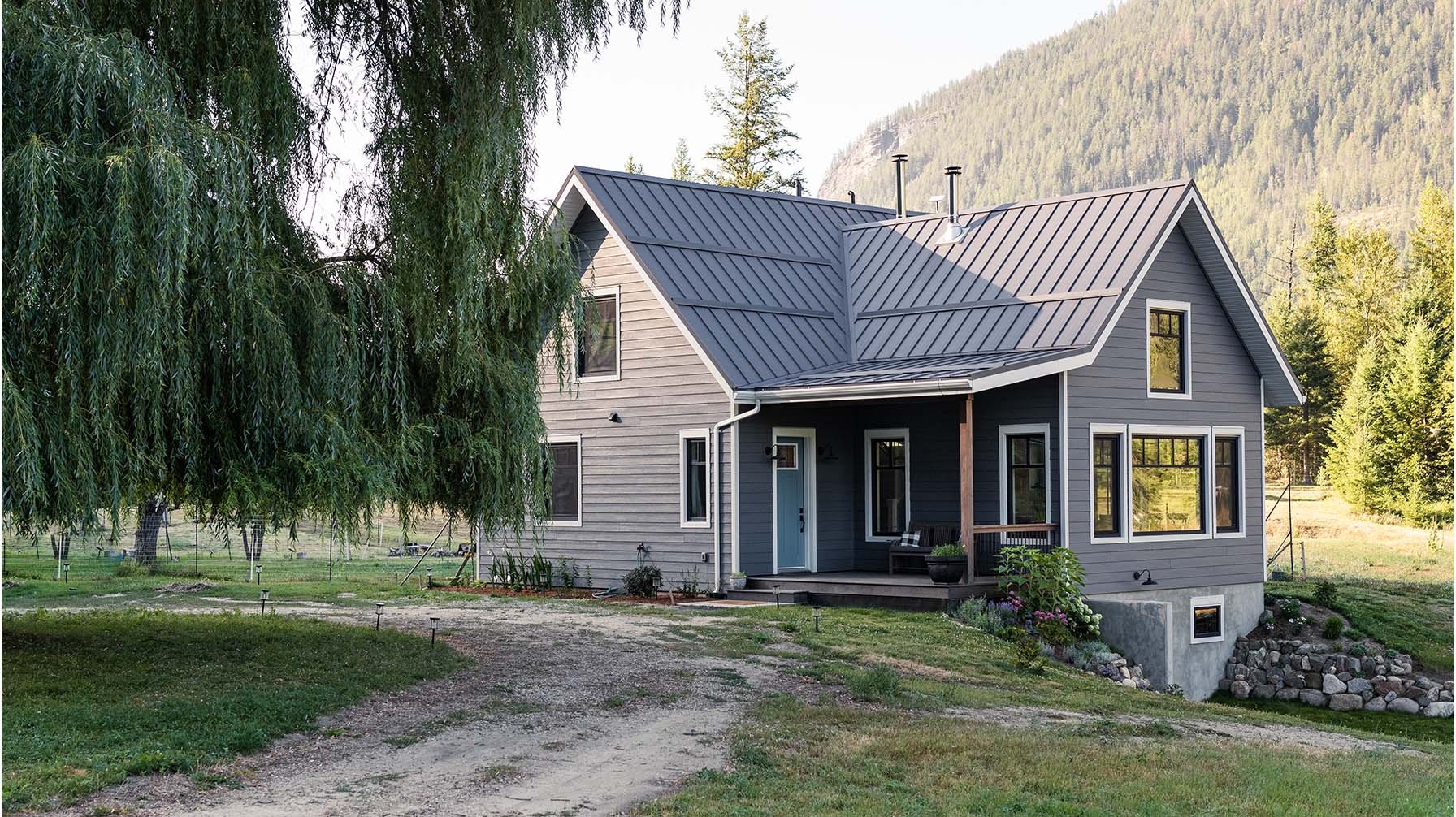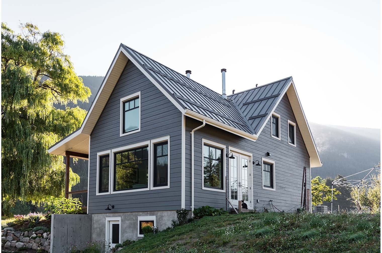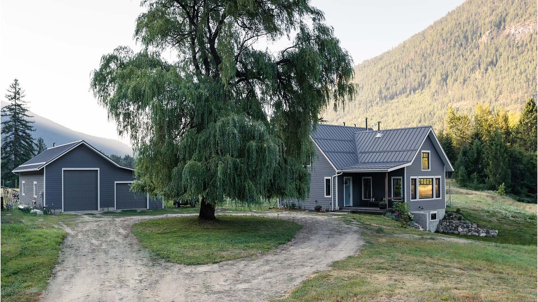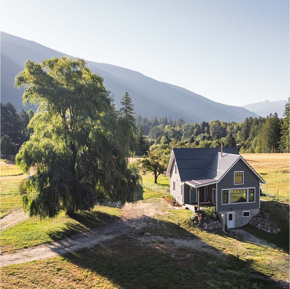 Nestled harmoniously within its natural surroundings, this idyllic home reflects a thoughtful blend of rustic charm and modern sustainability.