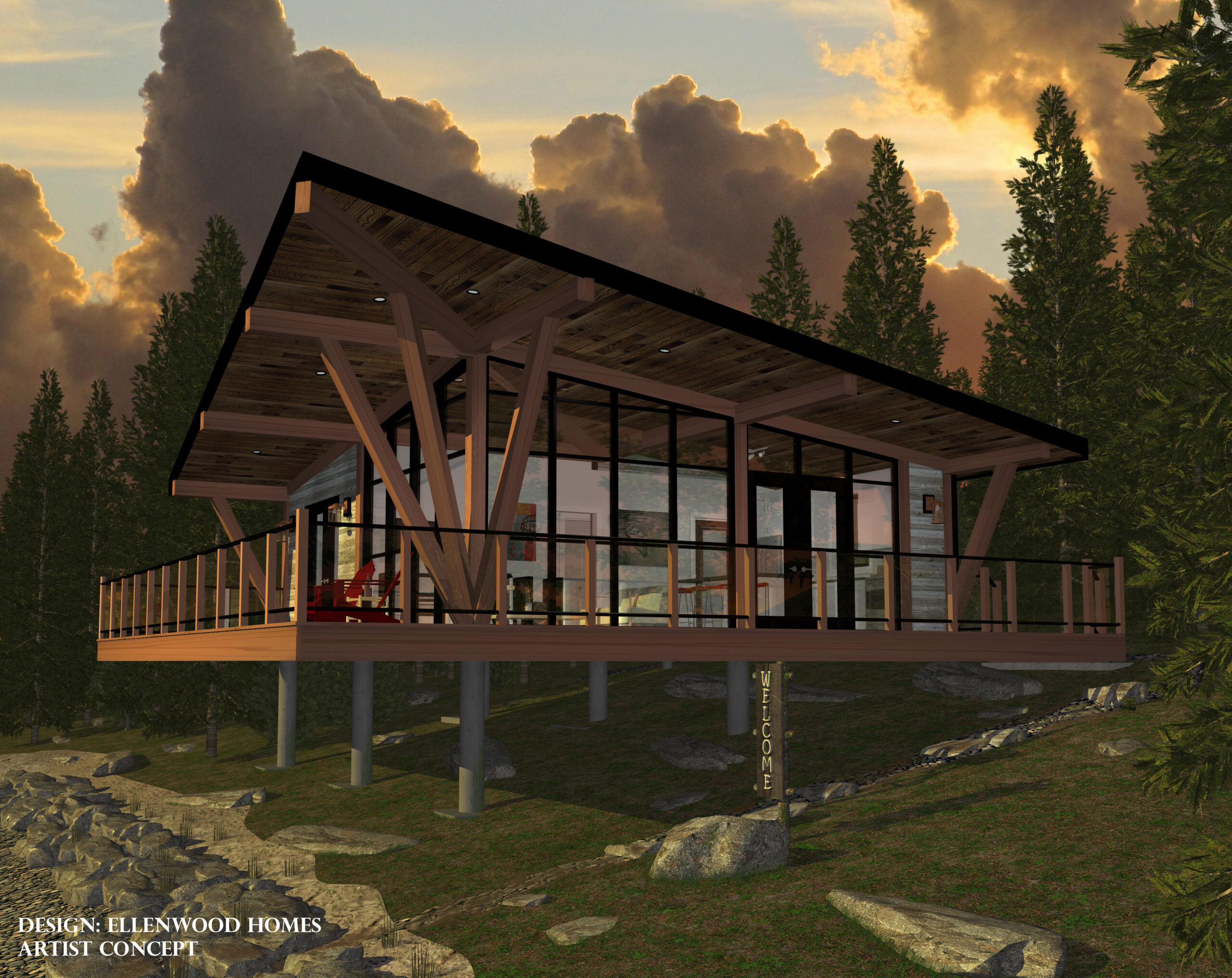 This home was designed with lots of windows and a timber structure to maximize the views from it’s large cantilevered deck at the front.