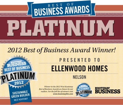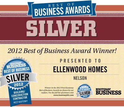 Ellenwood Homes was chosen for three 2012 Best of Business Awards by Kooteney Business Magazine