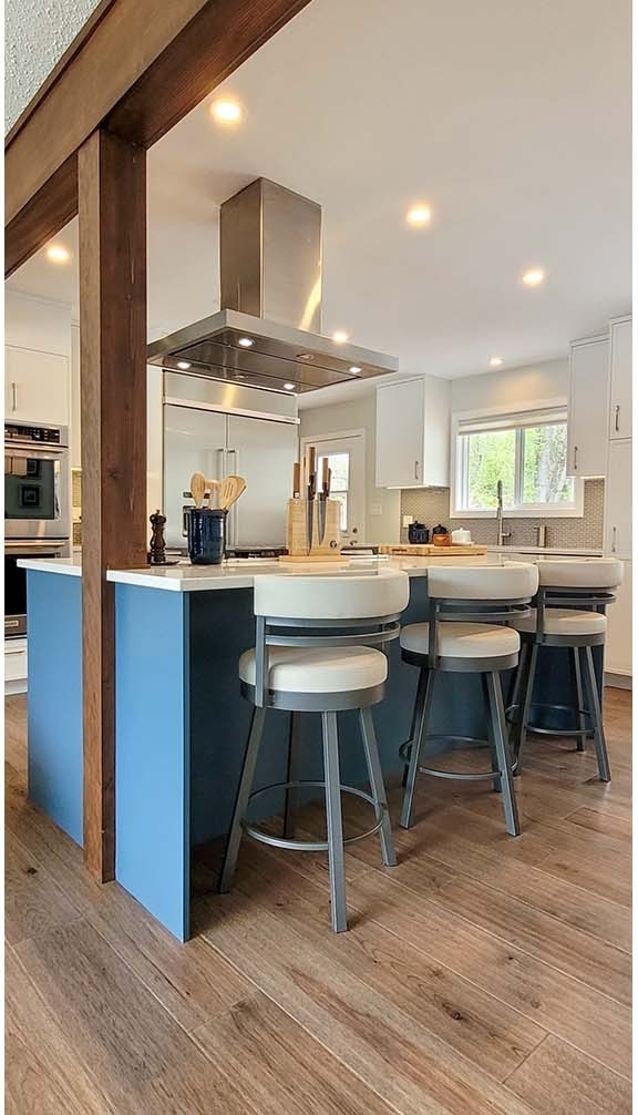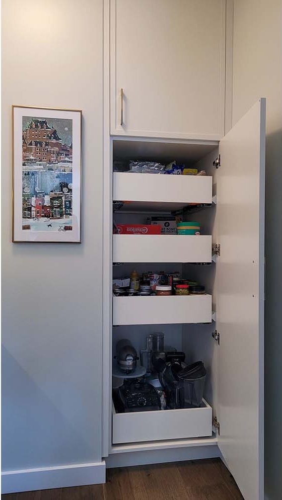 A possible fourth renovation was planned along with this great room re-design. That work will include improved lighting at the entry / living room / hall and the removal of the stippled ceiling finish. We pre-framed the space for a new shower in the ensuite bath as part of the third project’s pantry upgrade. Project 4 is also planned to include a new media center in the living room and new closet fittings throughout. Stay tuned for the next chapter in this home’s transformation!