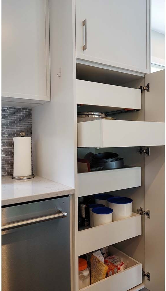 The clients really enjoy cooking and this new kitchen includes their dream appliances and special storage features.