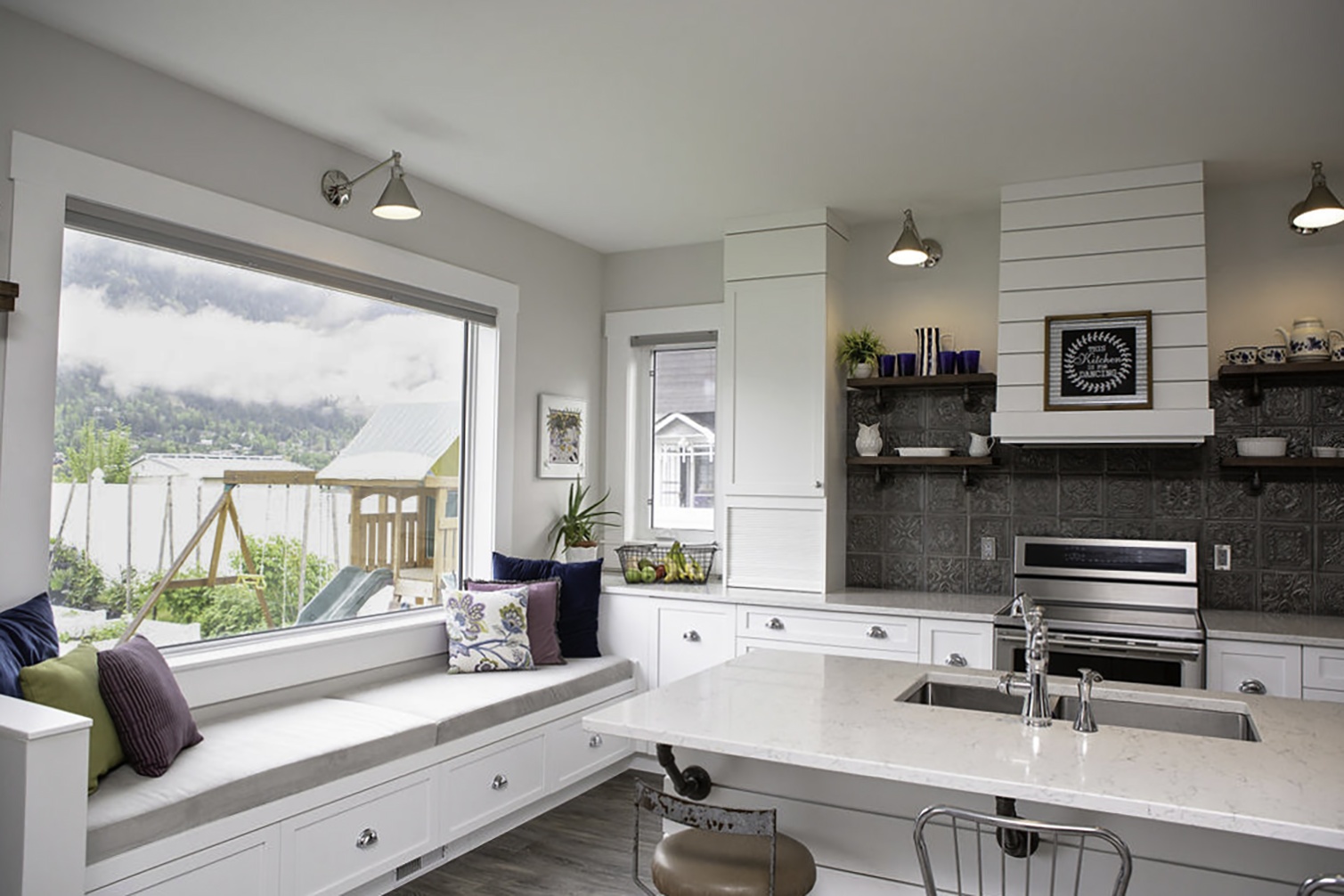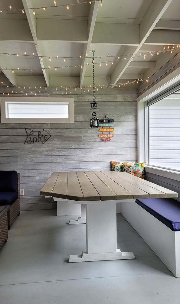 We added on to the back of the house to create a large kitchen, dining, dancing area.